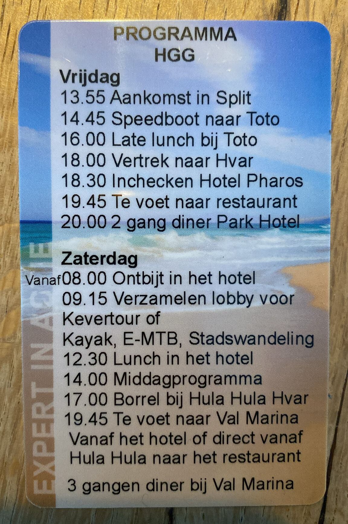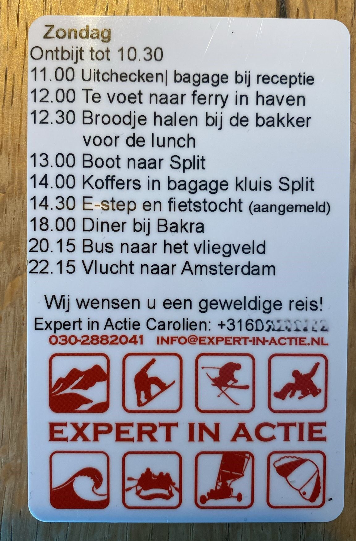 Al onze gasten krijgen aan het begin van de reis een programmakaartje. Zo weten ze precies hoe laat ze waar moeten zijn en verloopt het reizen met grote groepen vaak heel gemakkelijk.