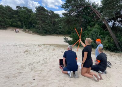 Wij organiseren regelmatig teambuildingsuitjes voor grote groepen. Eén van onze favoriete locaties is de Soesterduinen. Deze plek ligt centraal in Nederland, op de Utrechtse Heuvelrug. Met uitgestrekte zandverstuivingen, open vlaktes en bossen is het de ideale omgeving voor onze populairste activiteit: Expeditie Robinson.
